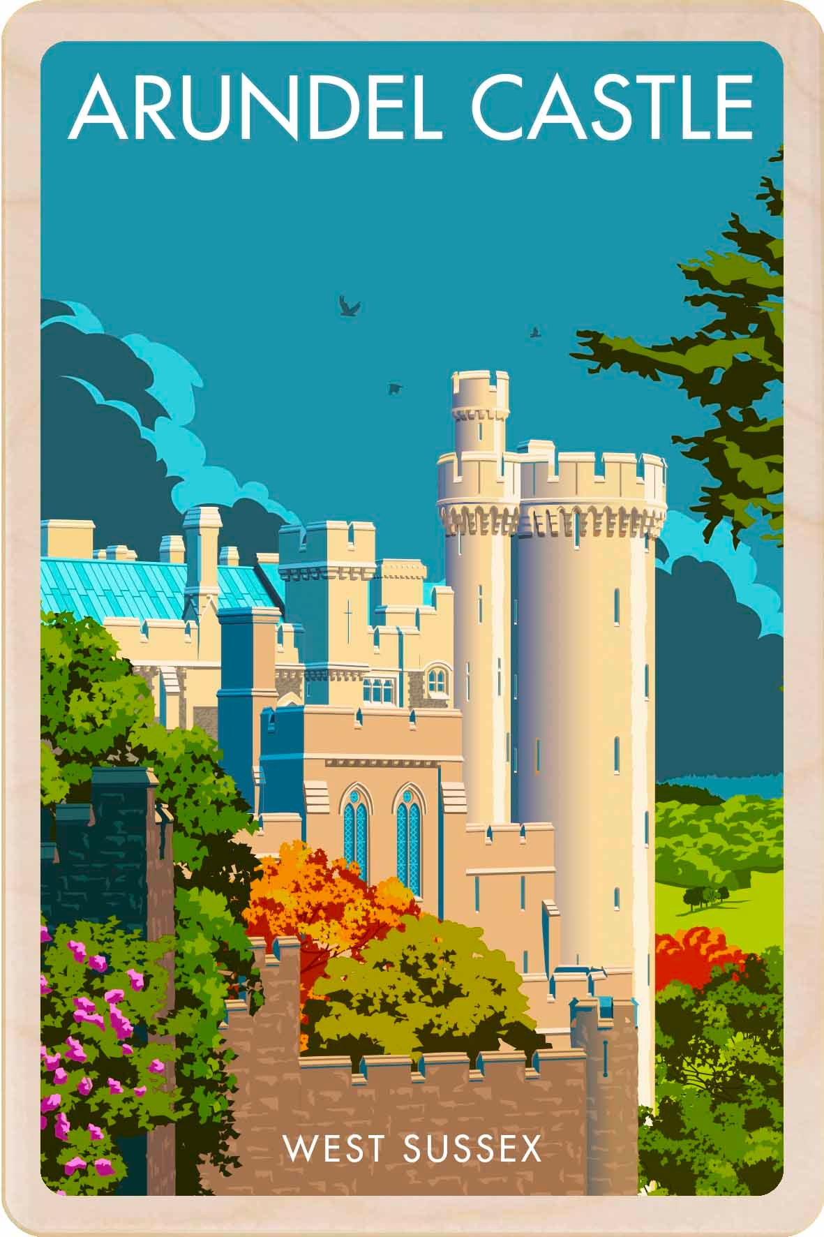 Arundel Castle, Sussex - Original illustration by Stephen Millership, printed in Suffolk on sustainable wood. A durable and display-worthy postcard—ideal to send, gift or collect.