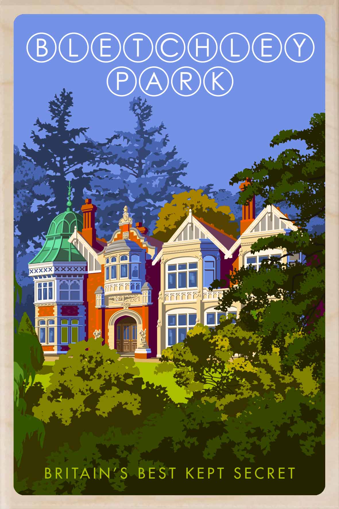 Bletchley Park, England Best Kept Secret - Original illustration by Stephen Millership, printed in Suffolk on sustainable wood. A durable and display-worthy postcard—ideal to send, gift or collect.