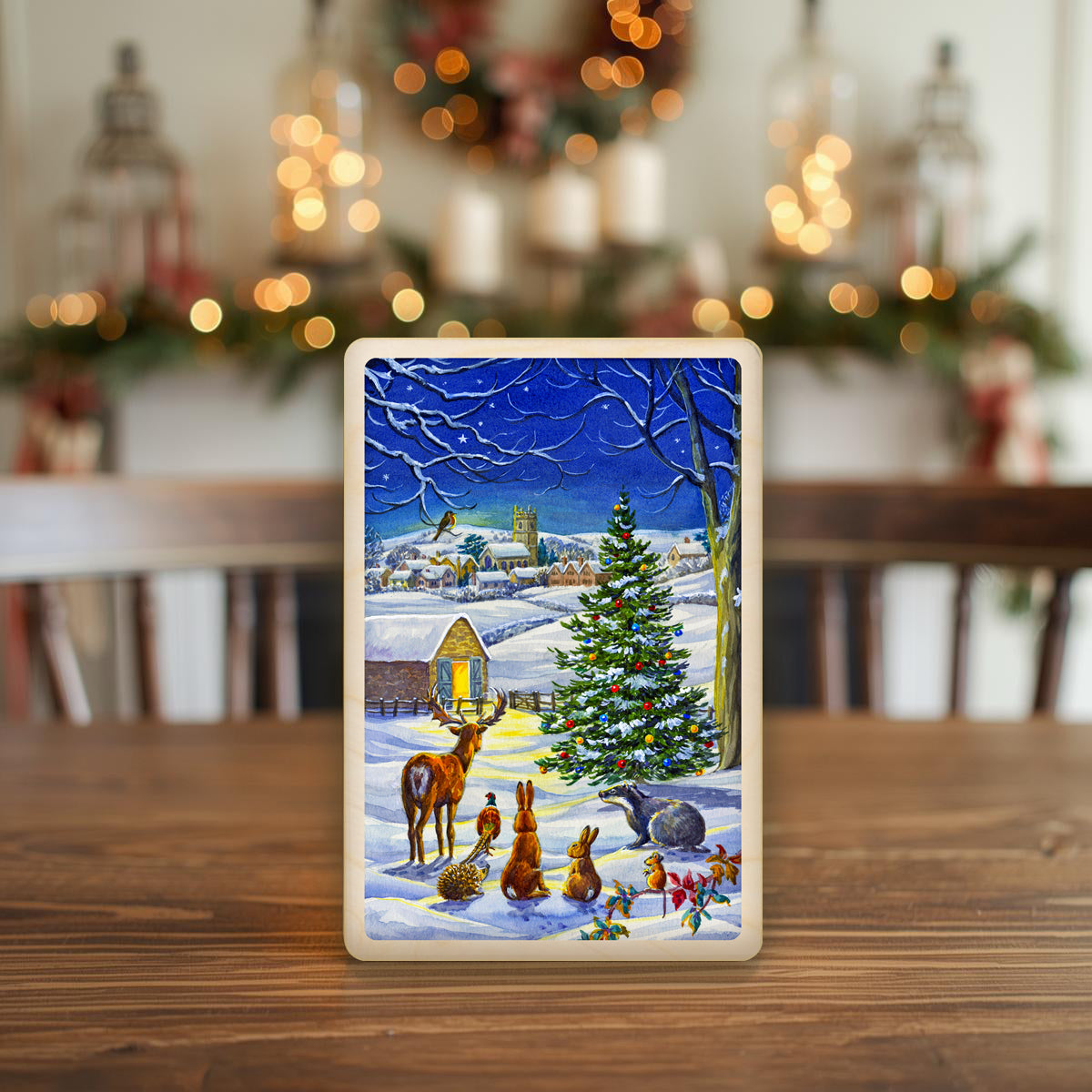 Christmas Night – Christmas card - Wooden Postcard