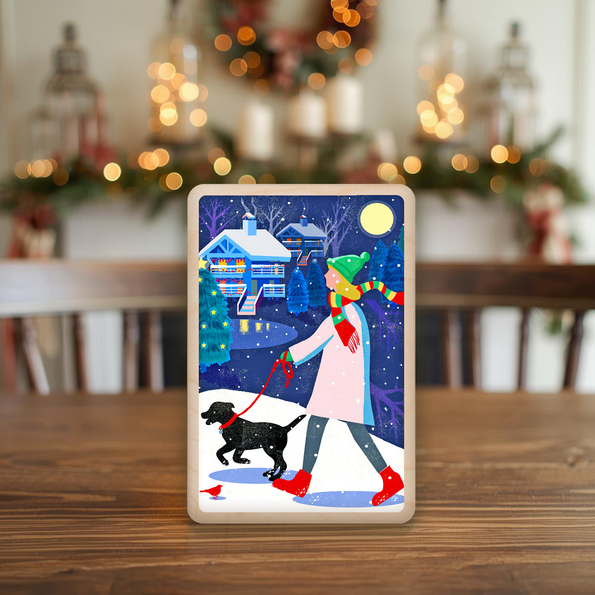 Christmas Dog Walk – Christmas card - Wooden Postcard
