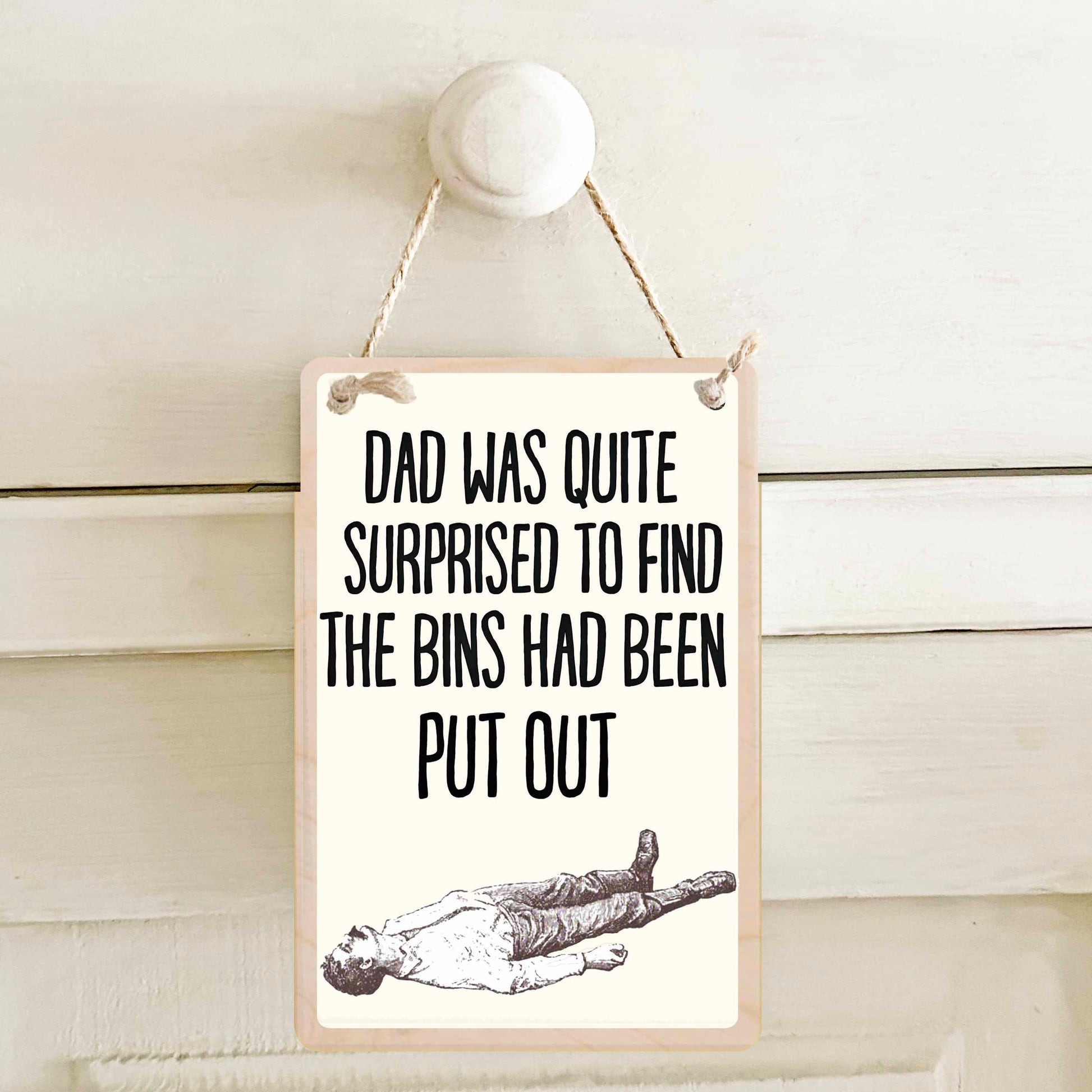 Wooden mini sign with old-fashioned twine for hanging in place.