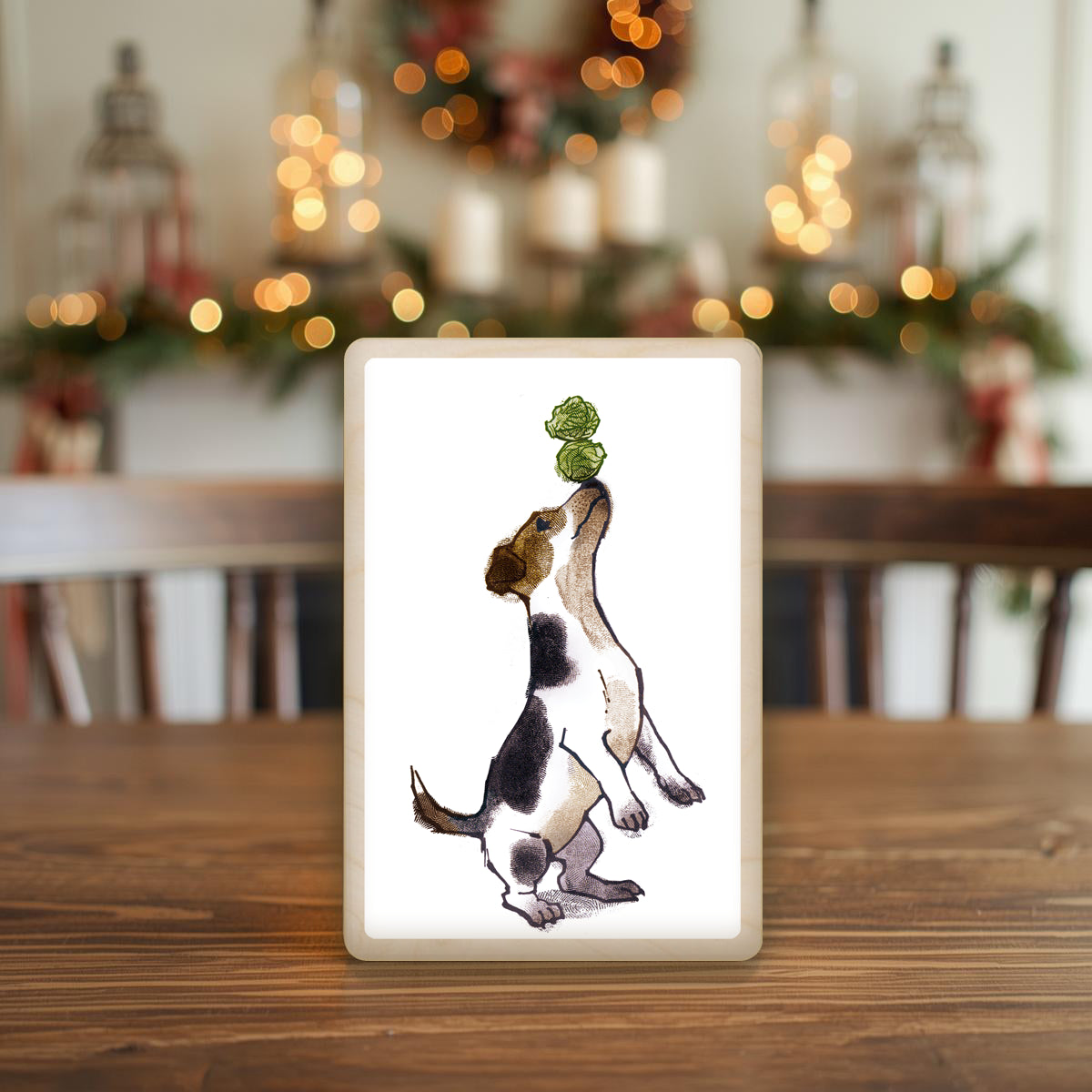 Dog and Sprouts – Christmas card - Wooden Postcard