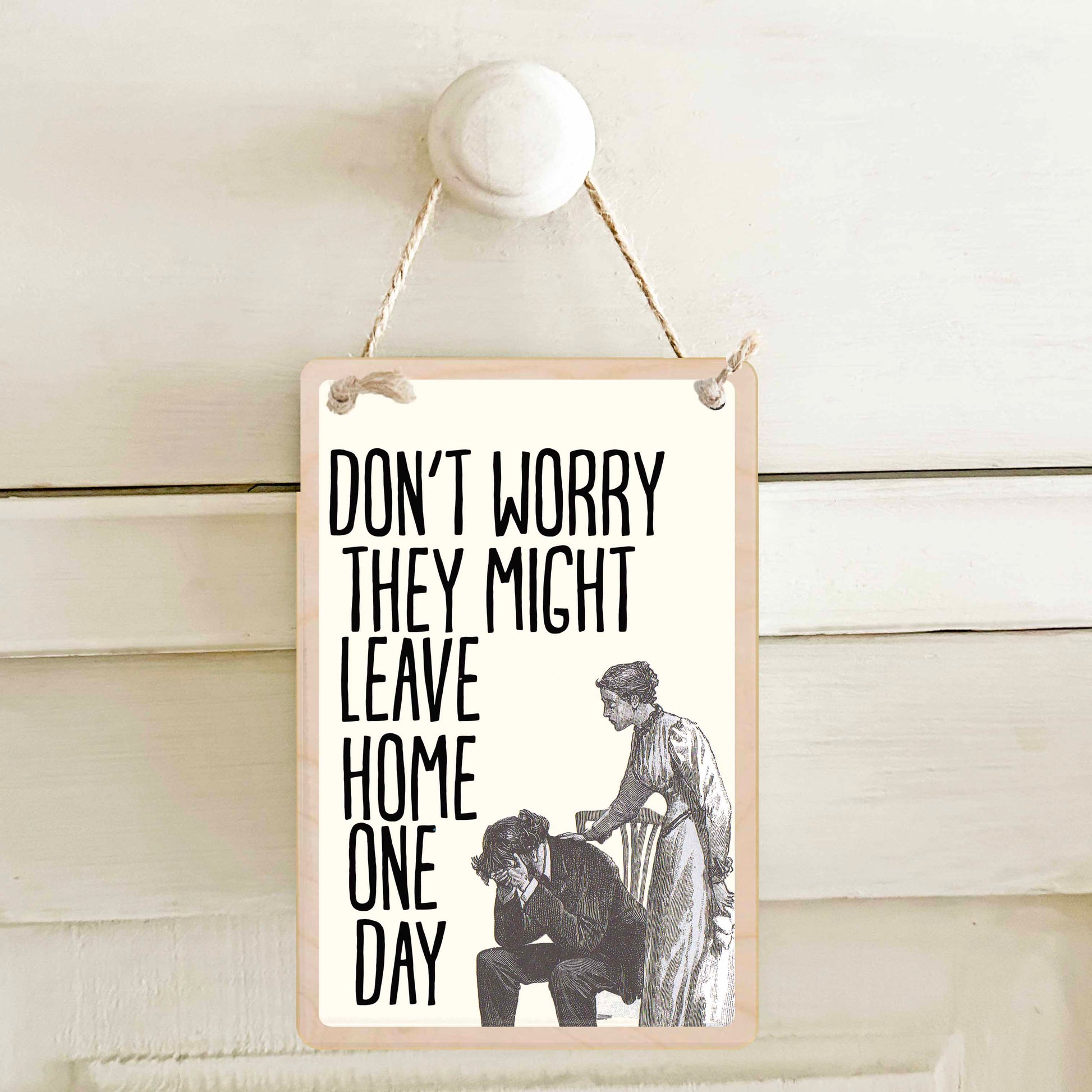 Wooden mini sign with old-fashioned twine for hanging in place.