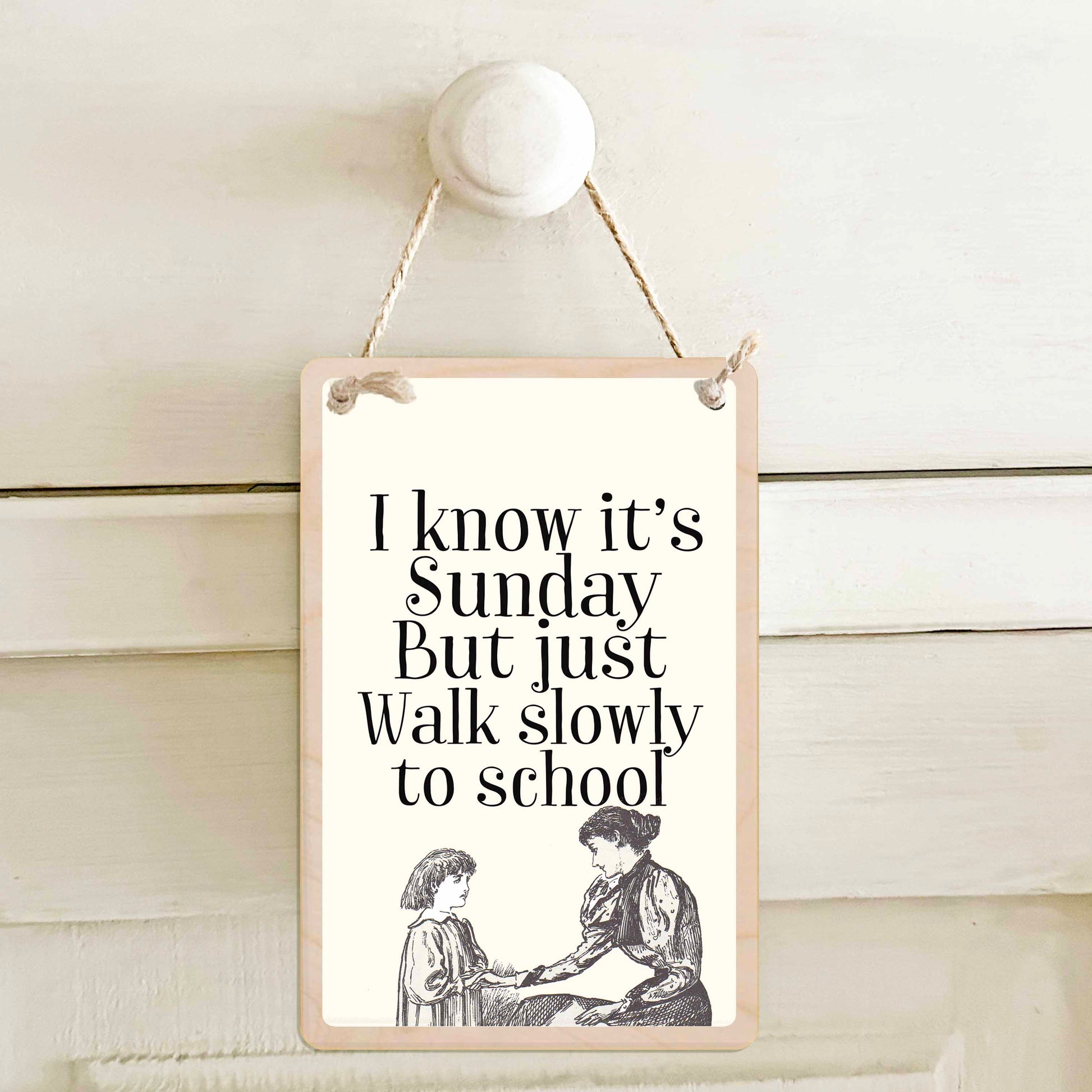 I Know It's Sunday But Just Walk Slowly To School - Wooden mini sign.