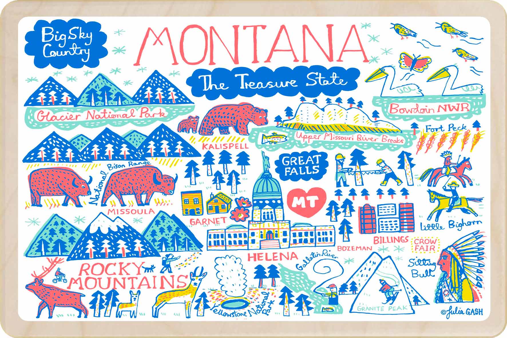 Montana – Eco-friendly Card - Doodle Map Wooden Postcard