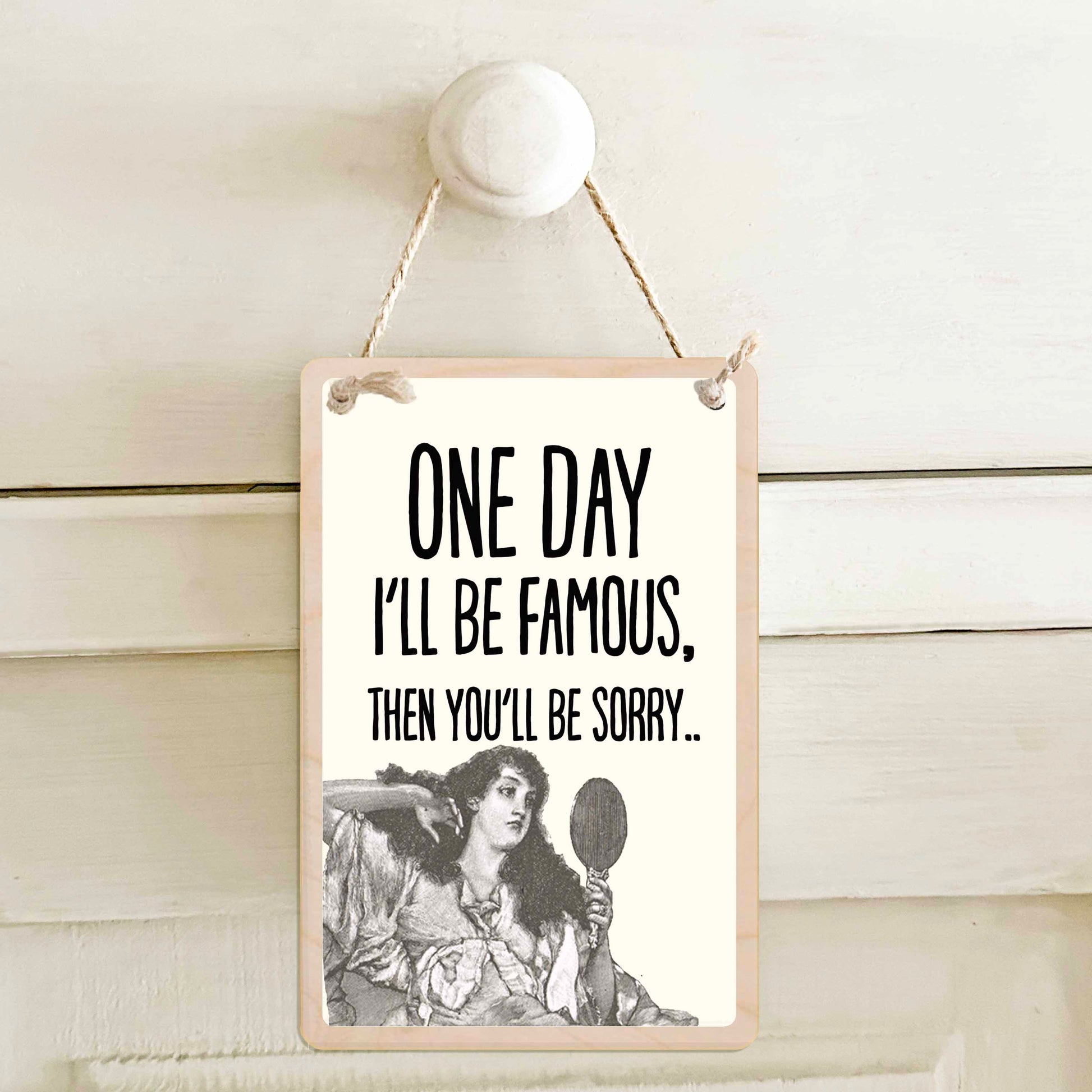 One Day I'll Be Famous Then You'll Be Sorry - Wooden mini sign.