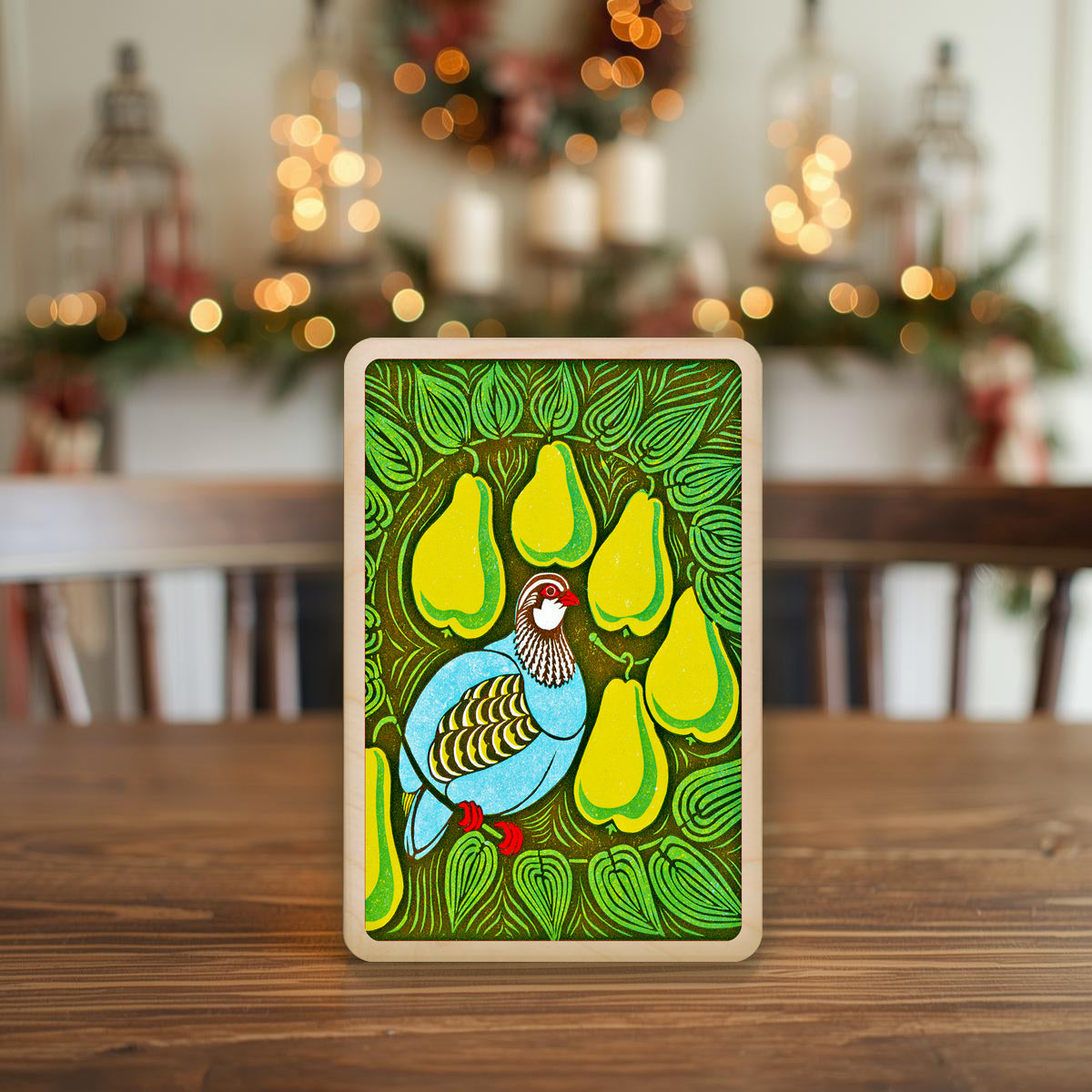Partridge in a Pear Tree – Christmas card - Wooden Postcard
