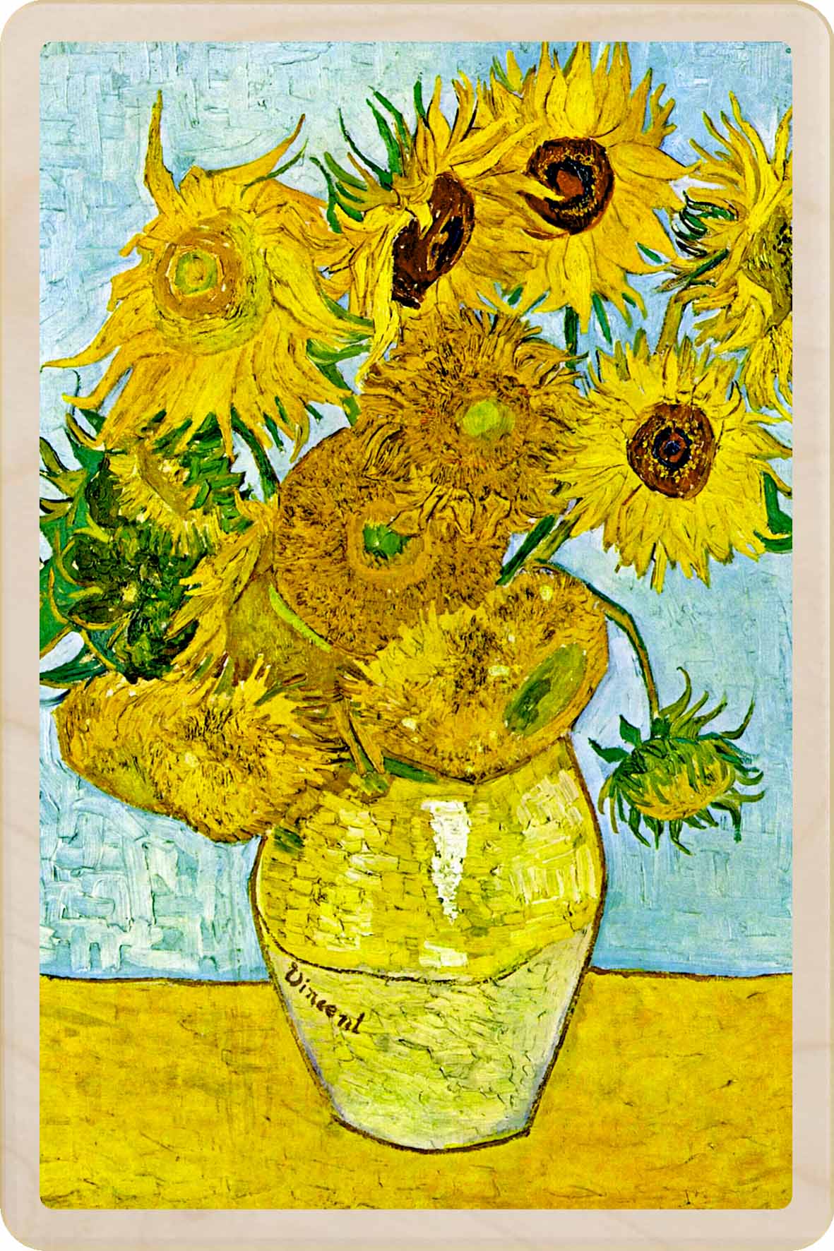 Vincent van Gogh, Sunflowers. Fine Art, printed on sustainable wood. A lasting keepsake to post, gift, and display.