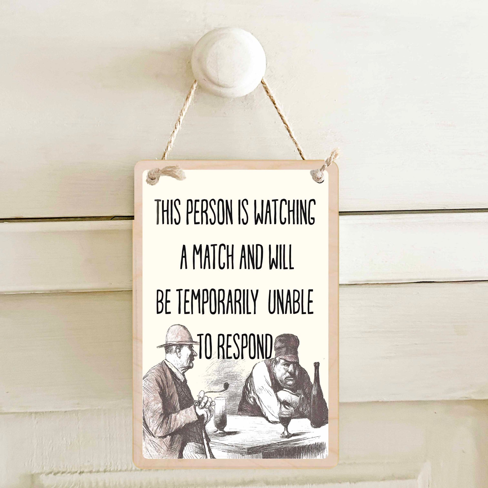 Wooden mini sign with old-fashioned twine for hanging in place.