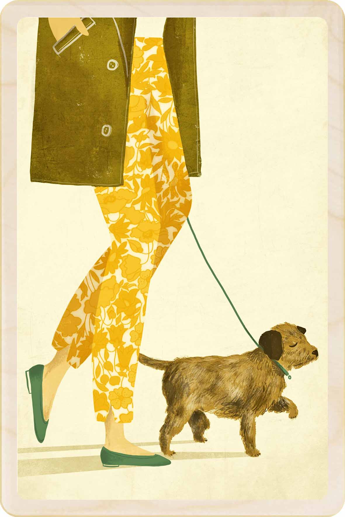 Border Terrier - Dog Wooden Postcard, illustration by Emy Lou Holmes, printed in Suffolk on sustainably sourced wood. Eco-friendly card you can send, gift, or display.